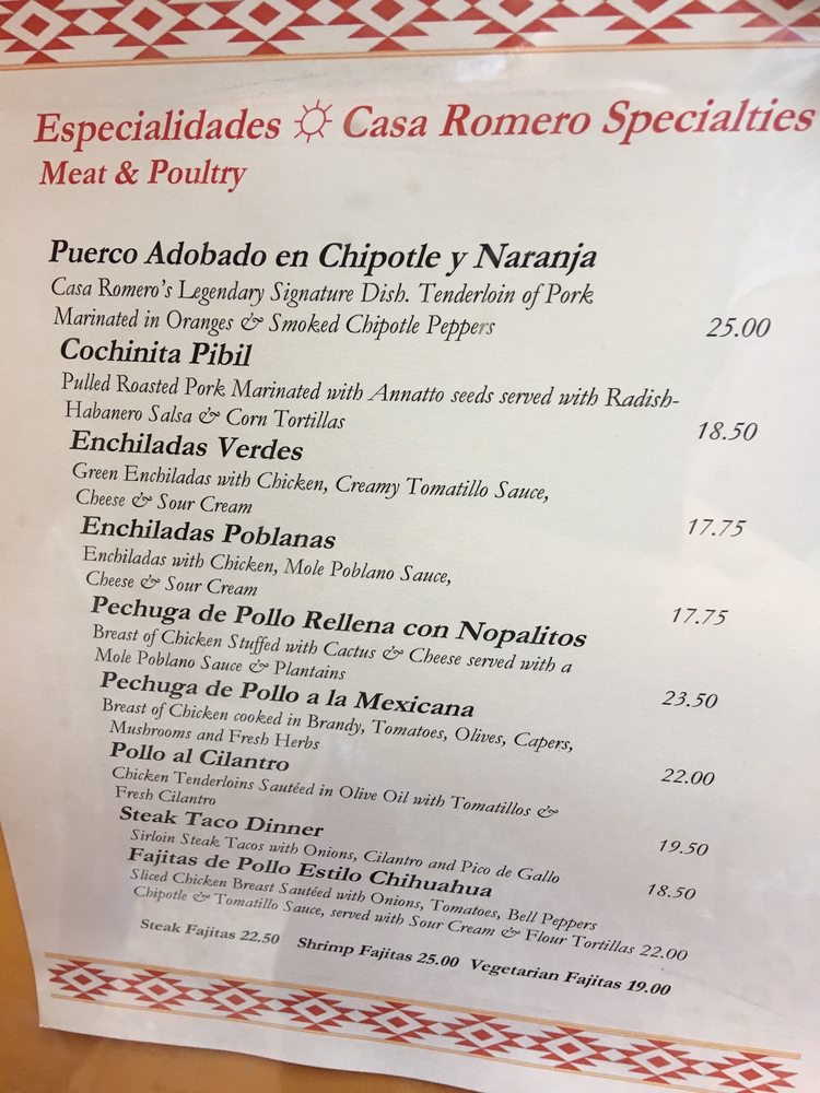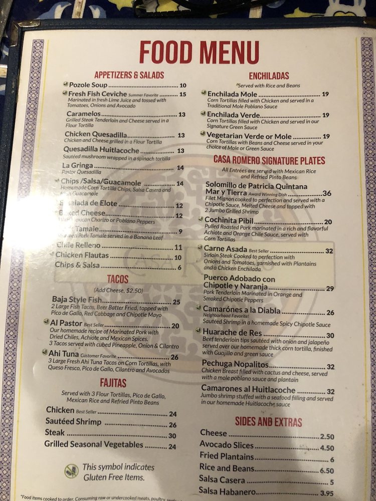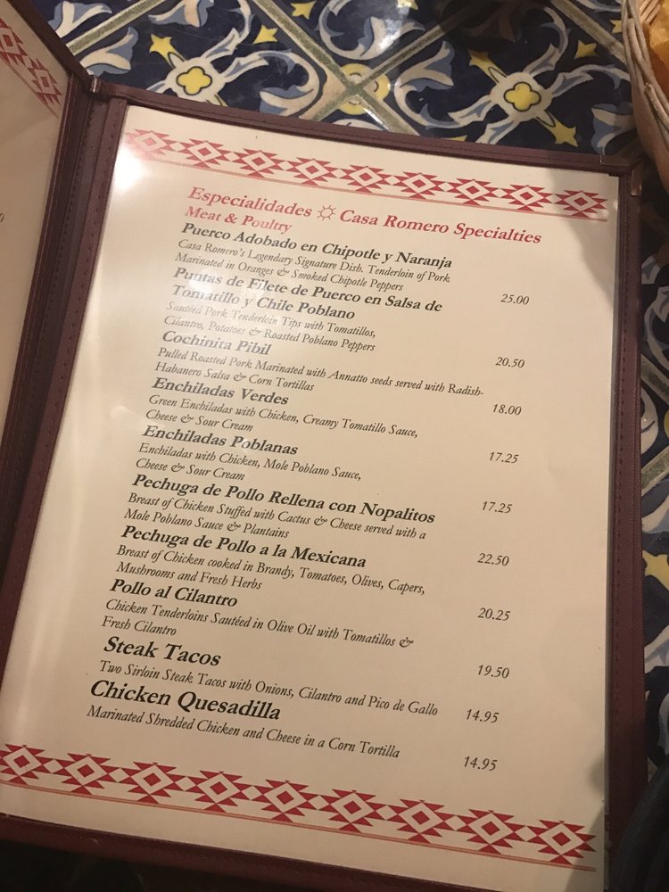 Casa Romero Menu